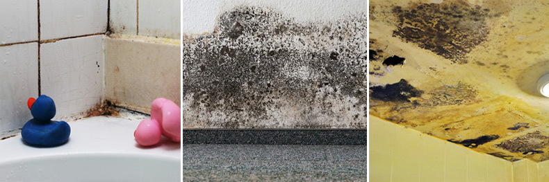 - Bathroom mould is much more likely to be on the ceiling, around windows or in the grout of your tiles, but don’t forget to check less obvious places like inside bathroom furniture